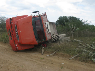 CAMINHÃO TOMBA EM ESTRADA QUE LIGA RIACHÃO DO JACUÍPE A ICHU