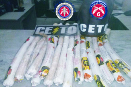 Policiais da 4ª Companhia de Polícia Militar de Cansanção, subordinados ao 6º BPM de Senhor do Bonfim apreenderam 14 bananas de dinamite, no Povoado de Santo Ambrósio, zona rural do município de Cansanção, por volta das 17h30, desta quinta-feira (31). Segundo informações da PM, ao Noticias de Santaluz, policiais realizavam rondas próximo à estrada do povoado, quando, de repente, flagraram um homem fugindo ao avistar a viatura. Durante a fuga, o suspeito abandonou um saco na estrada, que, de acordo com a polícia, continha 14 bananas de dinamite. Imediatamente os policiais iniciaram as buscas por toda a região para tentar localizar o suspeito, ainda não identificado. Os explosivos foram levados para a Delegacia de Polícia Civil de Senhor do Bonfim.
