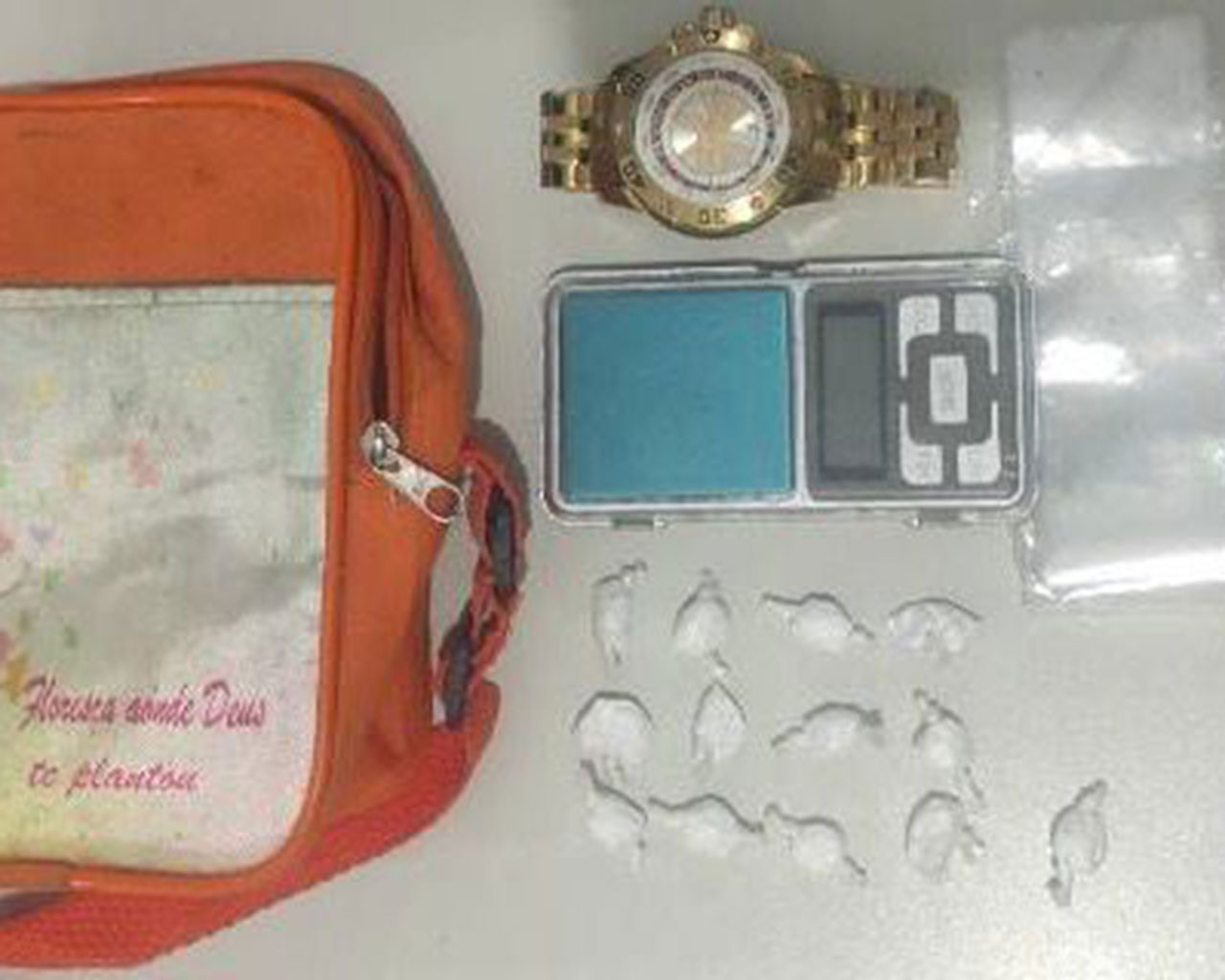 Durante a abordagem, os policiais encontraram com ele 13 porções de cocaína, uma balança de precisão e embalagens usadas para acondicionar drogas.