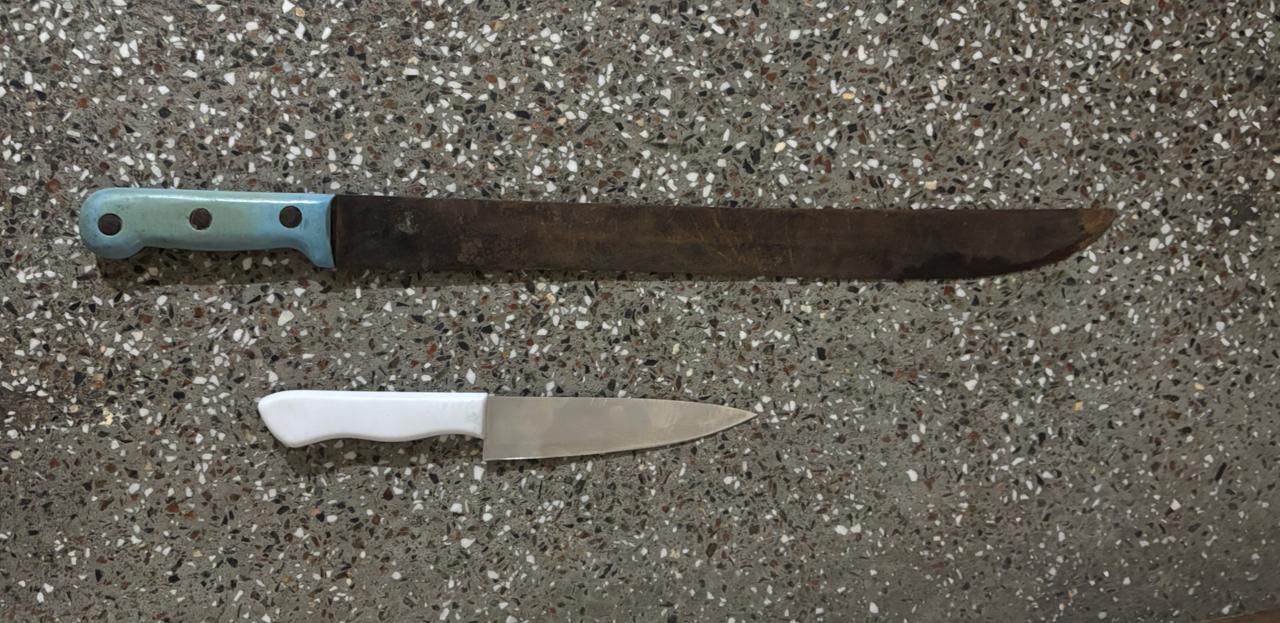 A PM disse que a guarnição acionou o Samu, mas não havia equipe disponível no momento. Os policiais então iniciaram uma negociação com o homem, que se rendeu e soltou a faca. Ele foi levado para avaliação médica e depois apresentado na delegacia. Foram apreendidos um facão e uma faca.