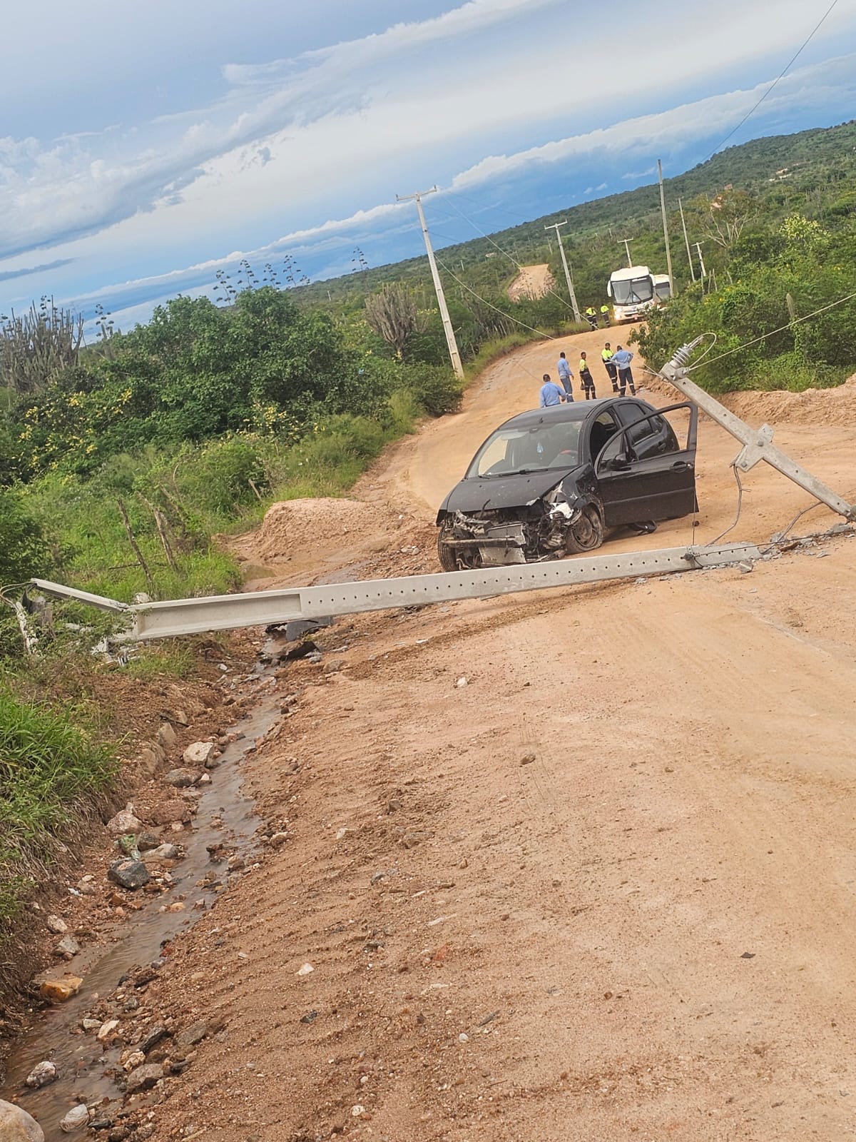Mulher fica ferida após carro bater em poste na zona rural de Santaluz